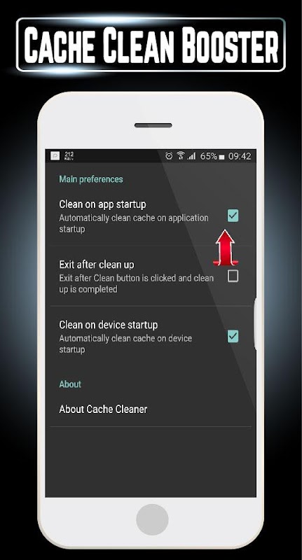 Displays all the application in the list that has some cache junk. Gives an option as to what is to be done when the application starts up. You can select option like clean the cache junk on start of this application. User can select about exiting the app on complete cache junk cleanup. Thus this is a good application for cache junk clean up.