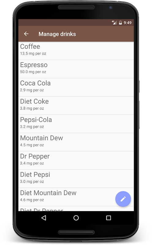 Noteer eenvoudig elke drank die u consumeert. Houdt rekening met het natuurlijke metabolisme van de cafeïne in elk