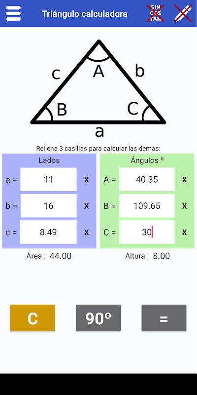 Calculadora triángulo - Trigon