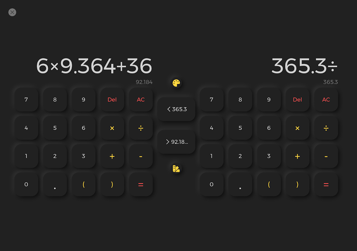 1. Ondersteuning voor het weergeven van twee rekenmachines op één scherm.