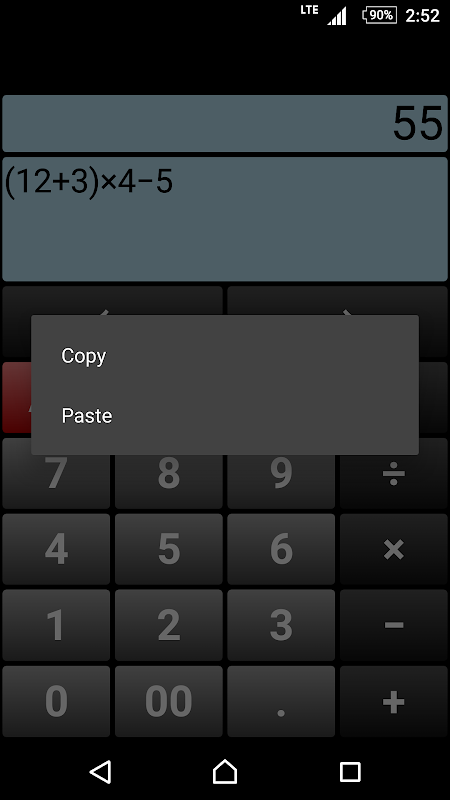 Wanneer je resultaat veld ingedrukt houdt, kunt u de berekening resultaat kopiëren.