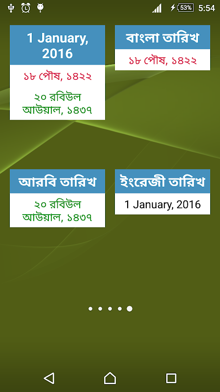 We bring this useful calendar application to celebrate the new year 2016. There are three calendars side by side: the Gregorian Calendar (English), Bengali Calendar and the Hijri (Arabic) Calendar. There are options to select which dates you want to see and in which order you want to see.