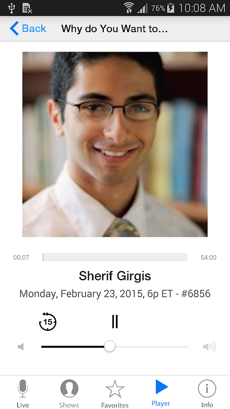 - Listen to live and archived shows