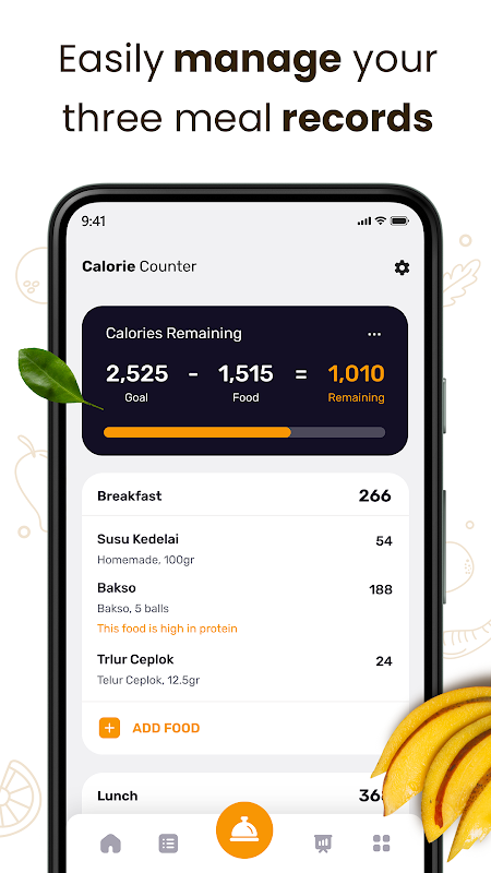 Calorie Counter begeleidt je naar een nieuwe levensstijl met gezonde gewoonten.