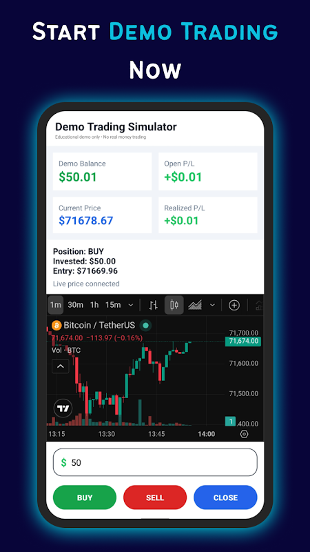 In plaats van direct te beginnen met echt handelen en geld te verliezen, leer eerst. Deze app helpt je een sterke basis te leggen, zodat je in de toekomst slimmer kunt handelen.