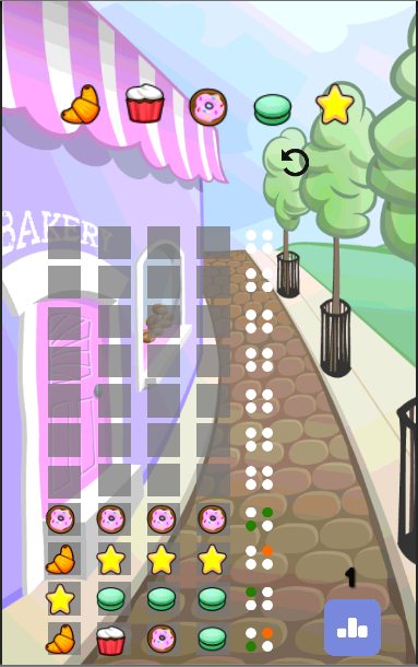 When you add the 4th candy on a line, the game displays 4 circles on the right side of this line :