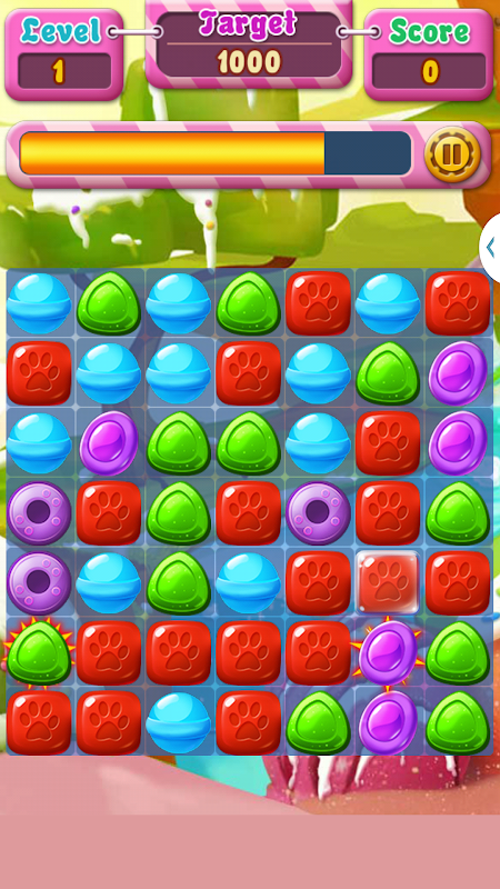 - Sluit drie of meer dezelfde snoep om punten te scoren.