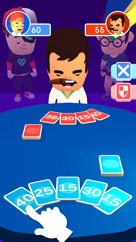 Duel with opponents in a simple card game of chance, both you and your opponent has a total of five cards, each one a value starting from one to five. The goal of the game is to always deal a card that is larger in value than your opponent, and winner is determined by those who has won the most matches. Should two cards of the same value meet, you must tap the screen as much as possible in order to win the match. Fun, simple, and can be played anywhere!