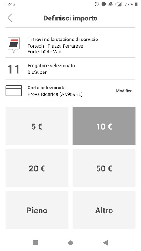 De profilering wordt automatisch opgehaald van het Cards-webplatform en u kunt benzine maken zonder de kaart te plaatsen.