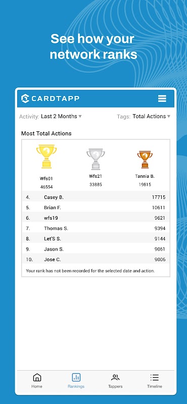 • On-the-go Lead Dashboard: Cardtapp fungeert als uw on-the-go lead-hub en houdt u op de hoogte van de status van uw bedrijf terwijl u door uw dag navigeert. Blijf op de hoogte van elke nieuwe contactpersoon die uw digitale visitekaartje downloadt, zodat u consistent in contact komt met potentiële leads.