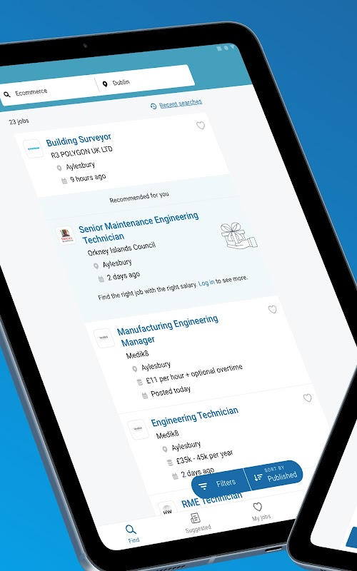 Of je nu in de bus zit, door de stad loopt of in je eigen woonkamer, je kunt met onze app in slechts een paar tikken zoeken en solliciteren. Compleet met een breed scala aan systeemeigen functies, levert het een boeiende gebruikerservaring die u door uw zoektocht zal leiden en in een reeks snelle en gemakkelijke stappen zal toepassen.