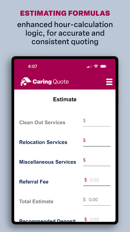 De Caring Quote-app biedt franchisenemers van nalatenschappen een tool om offertes op te stellen voor diensten gericht op het verkleinen van de woning na overlijden.
