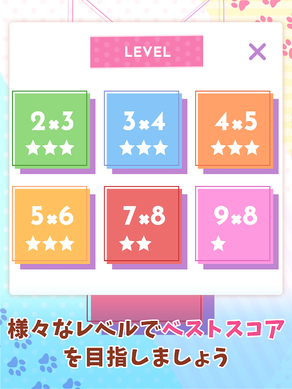 このメモリーマッチパズルは全て無料で遊べます。