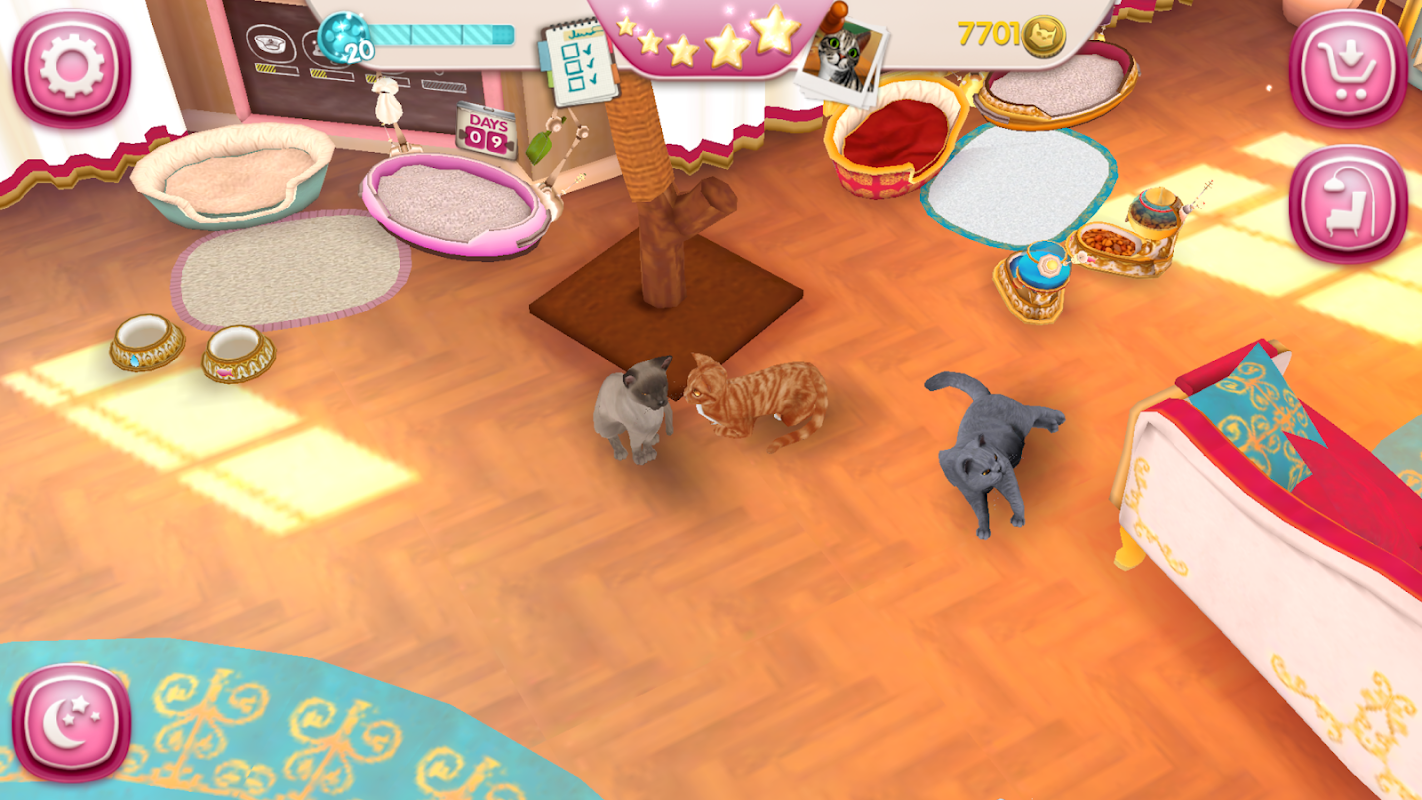 But your furry friends will get more and more demanding. They'll need more attention and their individual needs will increase. But the more successful you are, the more stars your hotel will get and the more decorations will be available. And then you’ll be able to care for more different cats.