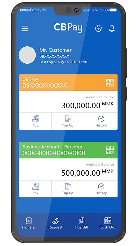 CB Pay is een dienst voor mobiel bankieren die beschikbaar is voor gebruik op alle mobiele telefoons. Klanten kunnen de CB Pay-app downloaden naar hun mobiele telefoon en zichzelf registreren voor hun portemonnee-account. Als klanten al een ATM-kaart hebben, kunnen ze zich registreren met hun ATM-kaartnummer zodat CB pay automatisch aan zijn ATM-kaartrekening koppelt.