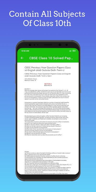Deze app bevat de laatste 10 jaar opgeloste vragen van CBSE Class 10th