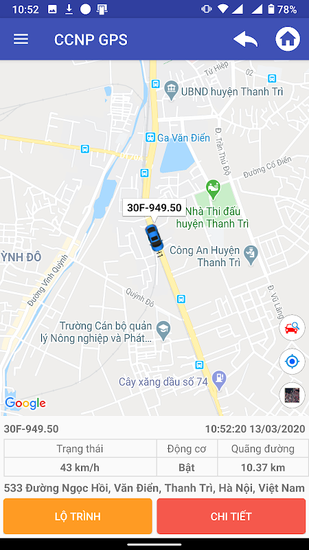 Ứng dụng giám sát hành trình xe CCNP GPS