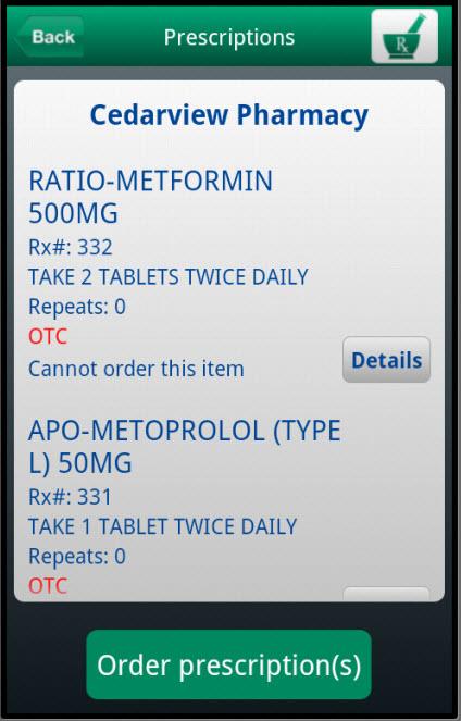 As part of maintaining a healthy life, Cedarview Pharmacy is proud to introduce an Android Smartphone Application. The application allows you to manage your prescription profile and order your prescriptions quickly and easily using Android Devices. Have your prescription profile at your fingertips anytime you need it - at the emergency room, walk-in clinic, doctors office etc.