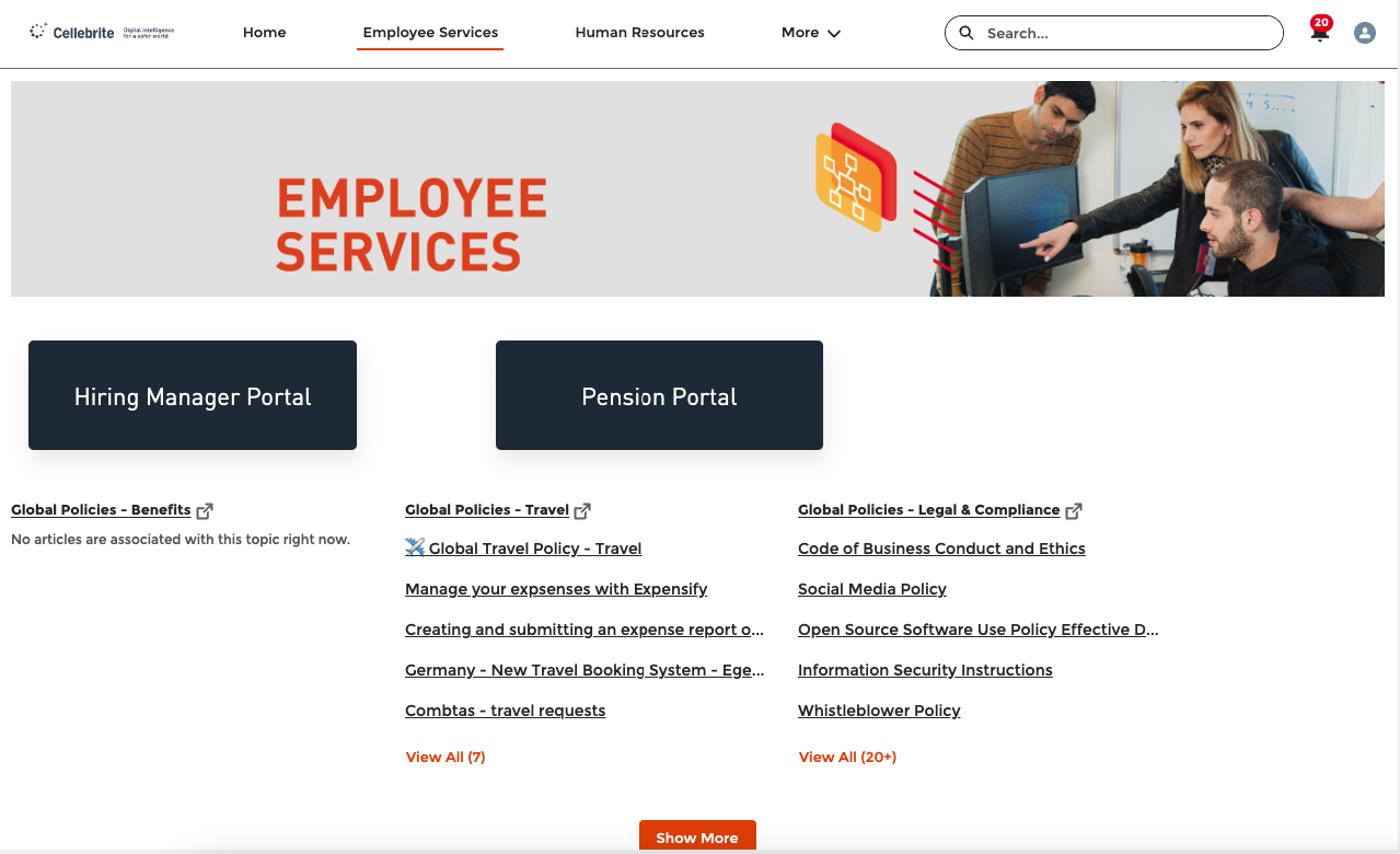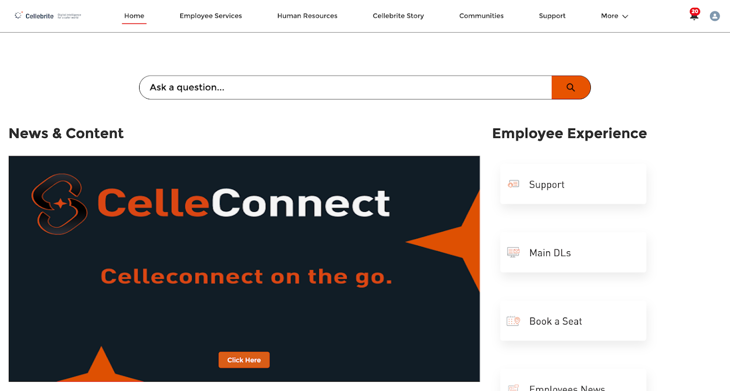 Het interne communicatieplatform van Cellebrite bevat tonnen nuttige informatie en is bedoeld als toegangspoort voor al onze werknemers die hun ervaring met het werken bij Cellebrite geweldig willen maken: