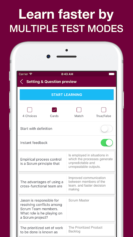 Enjoy the app and pass your Certified ScrumMaster, Scrum, Scrum team work together exam effortlessly!