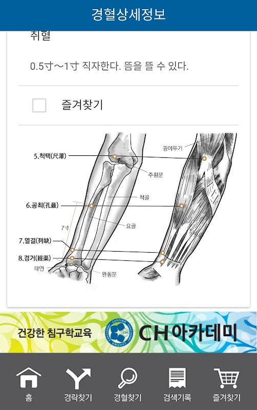 4. 즐겨찾기를 통해 자주 찾는 경혈을 저장할 수 있습니다.