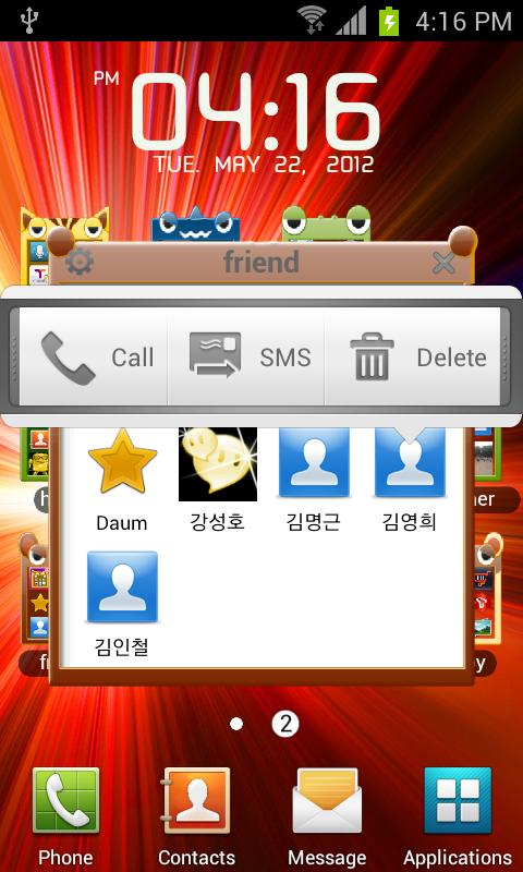 Characters folder of the application, telephone number and bookmark