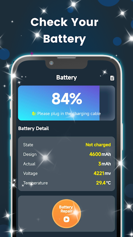 Charge Easy is een eenvoudige, verfijnde en gebruiksvriendelijke app die u helpt uw batterijstatus te kennen door er zachtjes op te tikken. Het toont de huidige batterijstatus, temperatuur, gezondheidstoestand, laadstroom, spanning en capaciteit, en biedt gebruikers een gedetailleerd overzicht en de juiste oplossing voor het batterijgebruik. Op wetenschappelijke wijze de batterijstatus onderhouden, de batterijprestaties weergeven, de batterijcapaciteit meten en u eraan herinneren om op te laden wanneer dat nodig is.