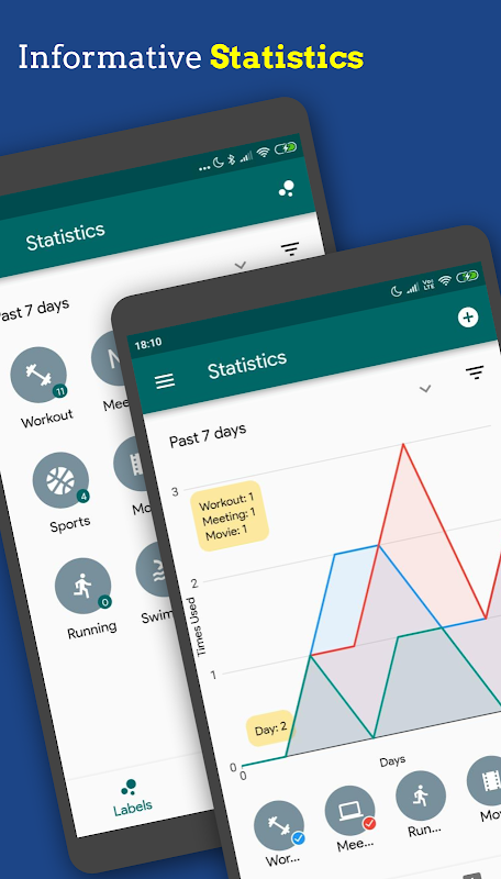 * Labels, om uw dagelijkse gewoonten, gedrag of alles dat kan worden geteld te controleren!
