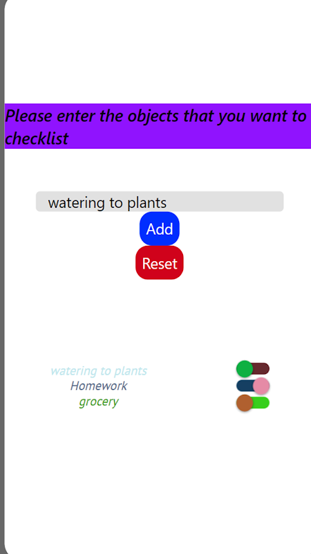 Het zal checklists maken waarmee de gebruiker de lijst met items invoert.