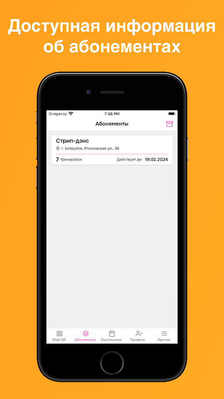 Ontvang informatie over uw lessen en abonnementen, evenals volledige informatie over de instelling.