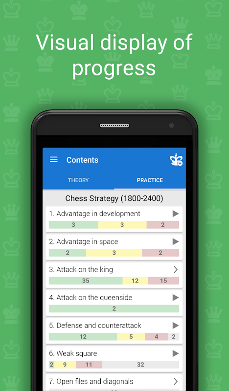 ♔ Je kunt de app verbinden met een gratis Chess King account en een cursus volgen vanaf verschillende apparaten tegelijk op Android, iOS, macOS en Web.