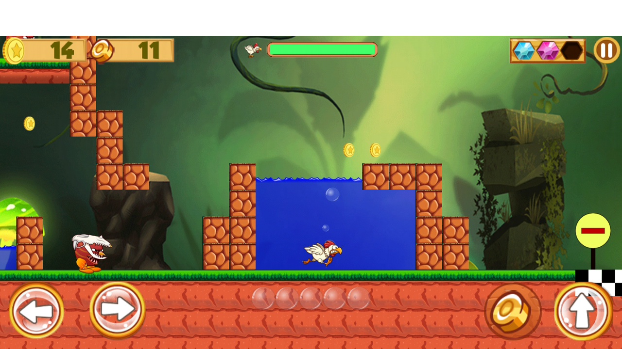 blokkeren. Onze kleine kip moet op de dieren springen om ze te doden en in ons chiquen-spel naar