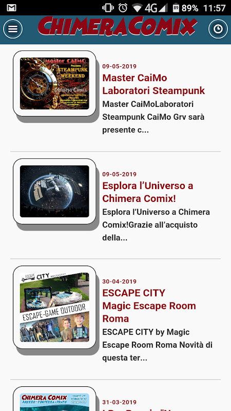 Applicazione ufficiale dell'evento in stile Comics&Games, Chimera Comix 2019. L'evento sarà il 29 e 30 giugno ed è organizzato dall'Associazione Mystara con la collaborazione della Fondazione Arezzo InTour e CNA Arezzo.