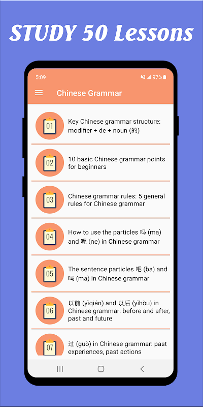 ★ Er zijn 50 lessen beschikbaar om je Chinese grammaticale vaardigheden te verbeteren.