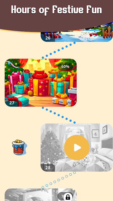 • Ontspan en kom tot rust: speel in je eigen tempo zonder tijdslimiet, zodat je jezelf volledig kunt onderdompelen in de feestelijke taferelen.