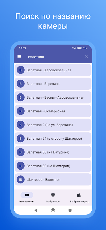 Een app voor snelle en gemakkelijke toegang tot openbare bewakingscamera's in de stad (zie lijst hieronder). Om gegevens te bewaren, zijn er naast het bekijken van video's ook screenshots van camera's beschikbaar. Er is een sectie met favoriete camera's beschikbaar. Zoom voor video's en screenshots. Camera-informatie (eigenaar, website, telefoonnummer, adres). Luchttemperatuur. Bekijk verkeersopstoppingen, uw auto op een parkeerplaats, het weer en bezienswaardigheden. Beschikbare steden (218):