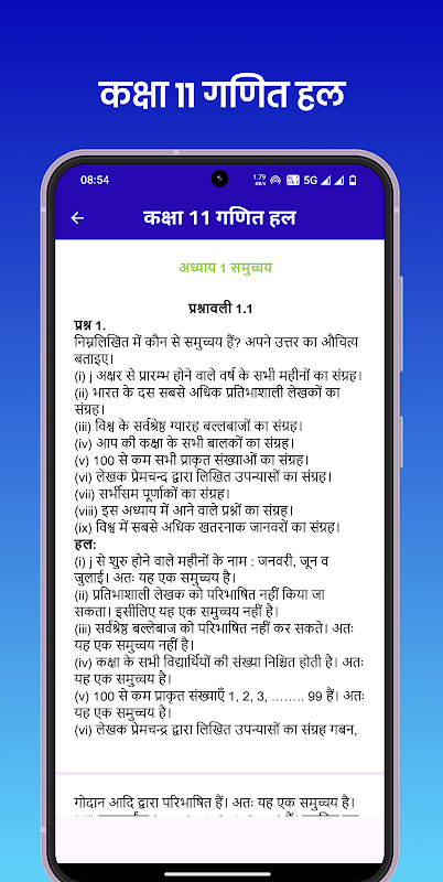Klasse 11 Wiskundige oplossing in het Hindi, hoofdstuksgewijs de oplossing van het boek