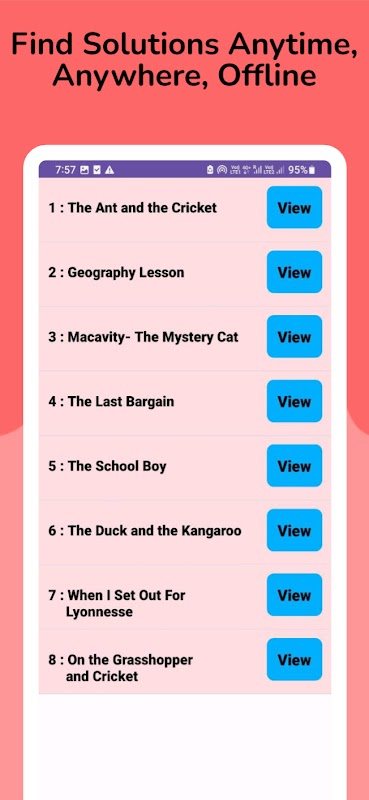 De Class 8 Engelse NCERT Solutions-app is speciaal ontworpen voor Klasse 8 CBSE-studenten om hen te helpen zich voor te bereiden op examens. Het helpt hen ook het hele jaar door om hun huiswerk op tijd af te maken en hun antwoorden te controleren.