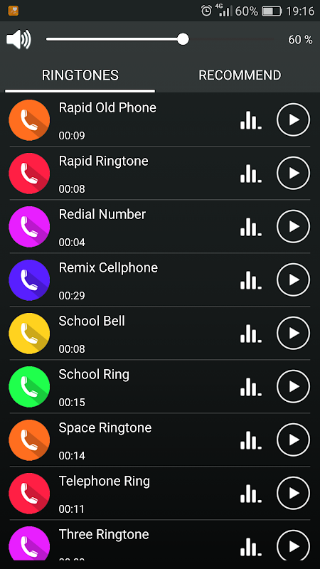 Open deze gratis klassieke telefoonbeltoniettoepassing, je kunt op de "play" -knop drukken om naar de MP3-muziek te luisteren.