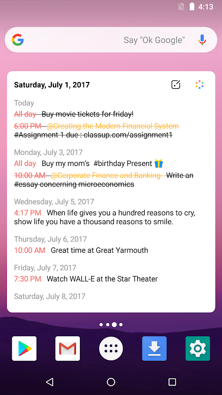 - Controleer uw vandaag, wekelijkse schema, notities snel.