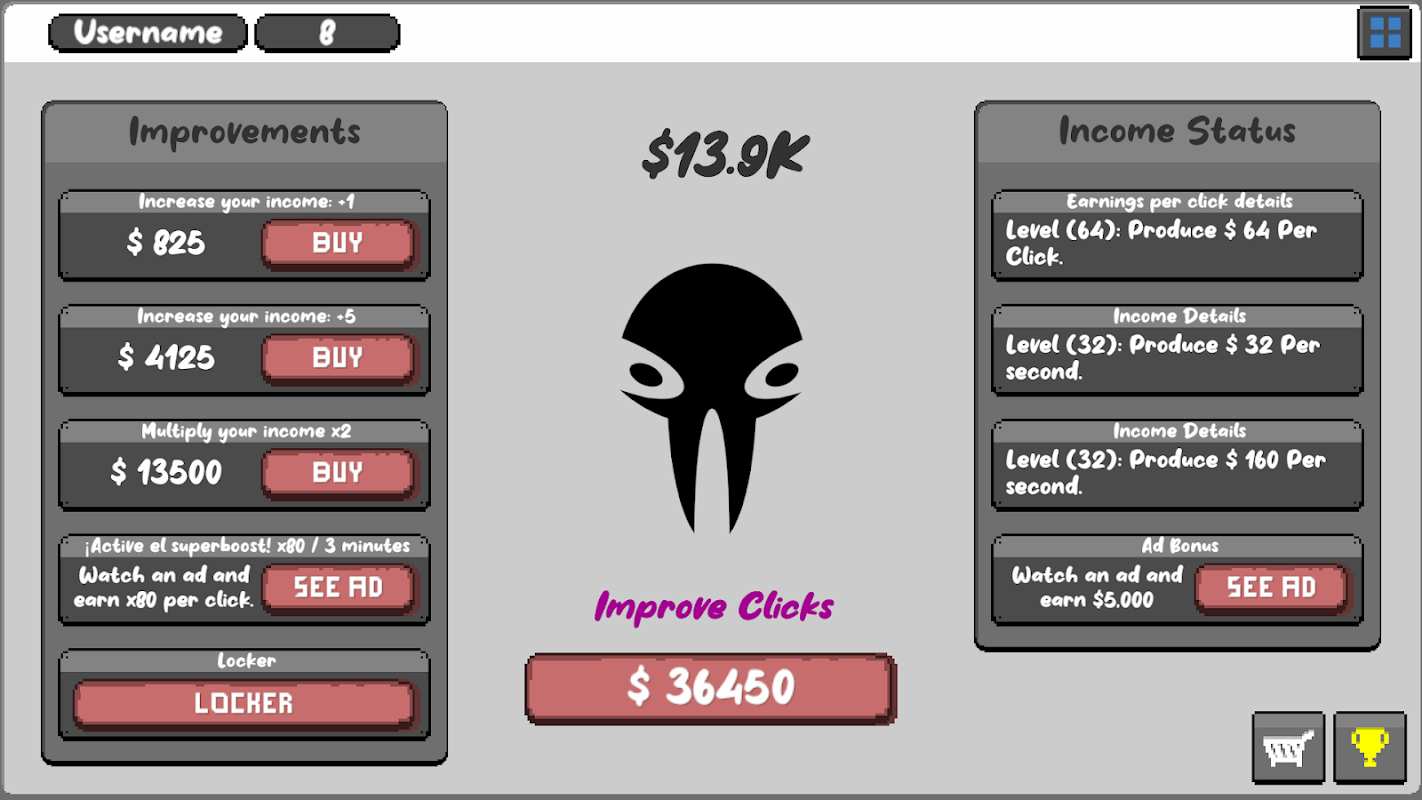 Spannend spel waarin je geld genereert, iconen koopt en upgrades ontgrendelt