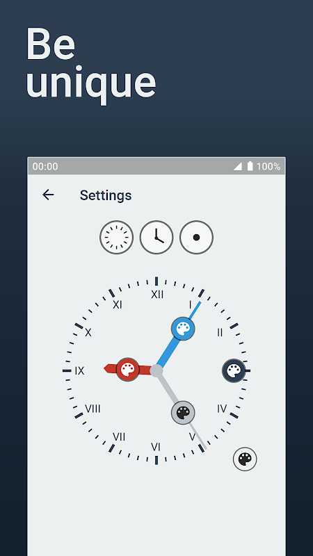 In de applicatie kun je de kleuren en het uiterlijk van de wijzerplaat en wijzers aanpassen.