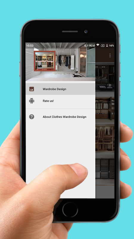 Deze applicatie bevat afbeeldingen van garderobedesign en vergroot uw vertrouwen in het hebben van een garderobedesign.