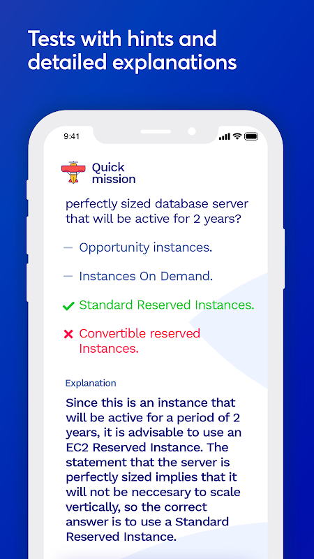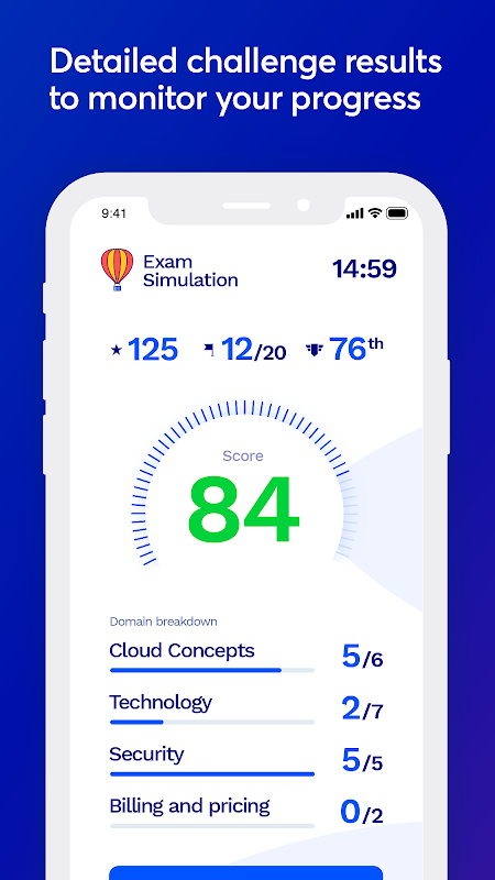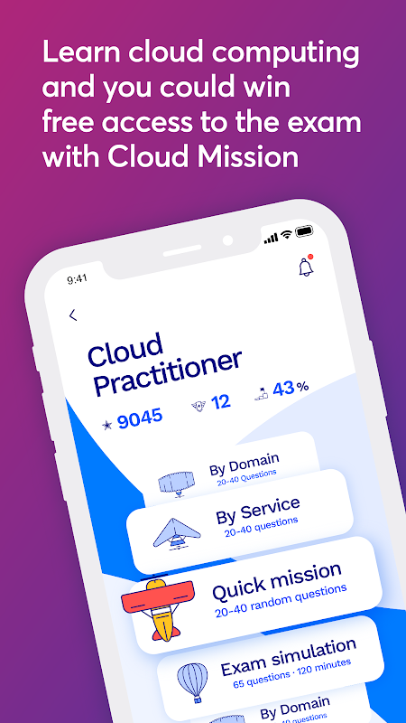 Cloud Mission is an application that allows you to specialize in Cloud Computing; We will help you prepare for the official exams so that you can be certified in Amazon Web Services, Microsoft Azure or Google Cloud among others. Get started now and become part of one of the most demanded professions in the IT sector job market with exam simulations, questions by services and domains.