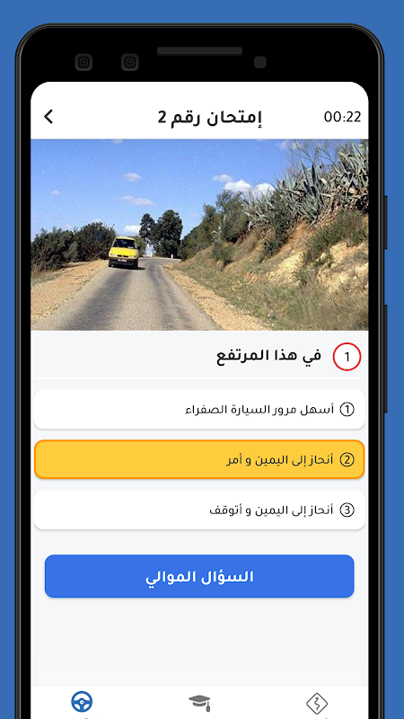 Een applicatie die vragen bevat die vergelijkbaar zijn met de officiële test, en zich richt op onderwerpen: verkeersborden en -borden, bestuurder en rijtuig, parkeren en stoppen, boycot en passeren, voorrang van het verkeer, Golan-regels, Golan-misdaden, eerste hulp, preventief onderhoud en energiecontrole, transport van gevaarlijke materialen over wegen