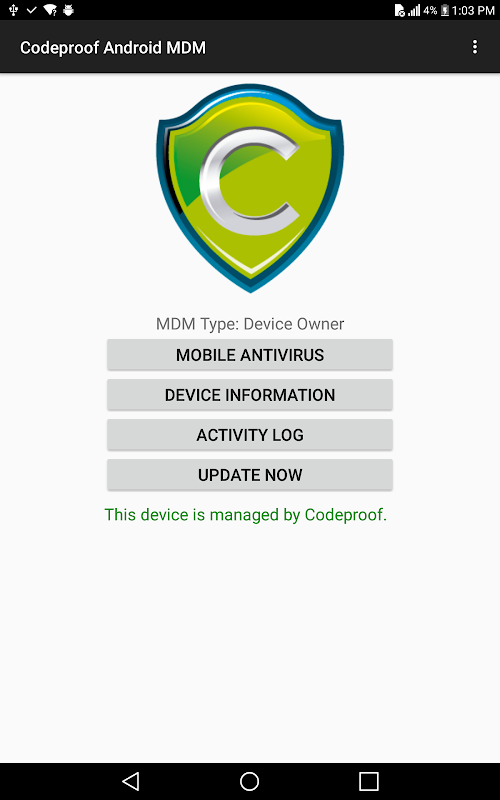 Codeproof Enterprise Mobility Management (EMM) Agent-app voor verschillende Android-apparaten.