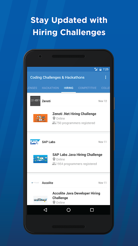 HackerEarth brings to you the best app to register for programming challenges & contests, hackathons and developer jobs. Highly recommended for all coders, programmers and hackers around the world, who are enthusiastic about competitive programming.