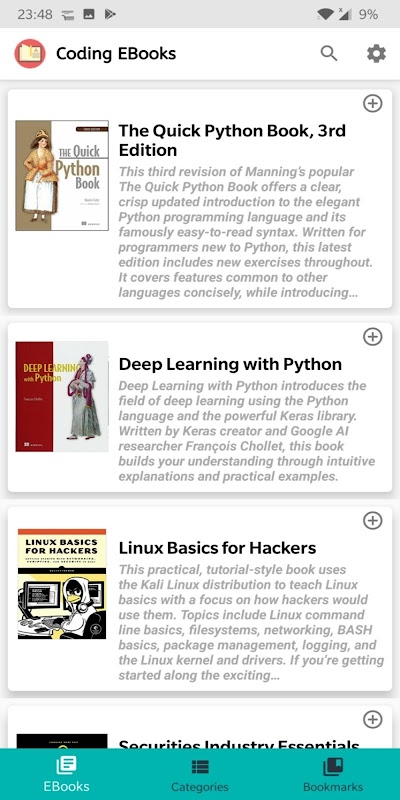 Are you Developer, Programmer, Coder, Hacker, Graphic Designer, Game Programmer or Network Administrator if you are then you reach the correct place and download this app where you can find almost 10 thousands Coding, Webs, Mobiles, Machine Learning, Networking, Graphics eBooks absolutely free. You can read online eBooks anytime, anywhere that you want. You can bookmark your favourite eBooks for easy to search.
