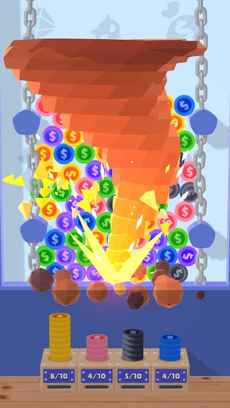 Coin Stack Frenzy is een zeer verslavende, leuke puzzel. Tik op een groep munten in dezelfde kleur om te stapelen. Gestapelde munten worden samengevoegd tot een papieren bankbiljet zodra u 10 of meer munten heeft bereikt. Voltooi alle doelen om het volgende niveau te halen.
