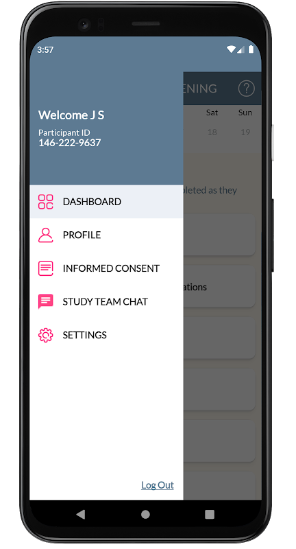 Upon download, the participants create a COLIC account and complete the Informed Consent process. A series of screens explains the parameters of the study, including: